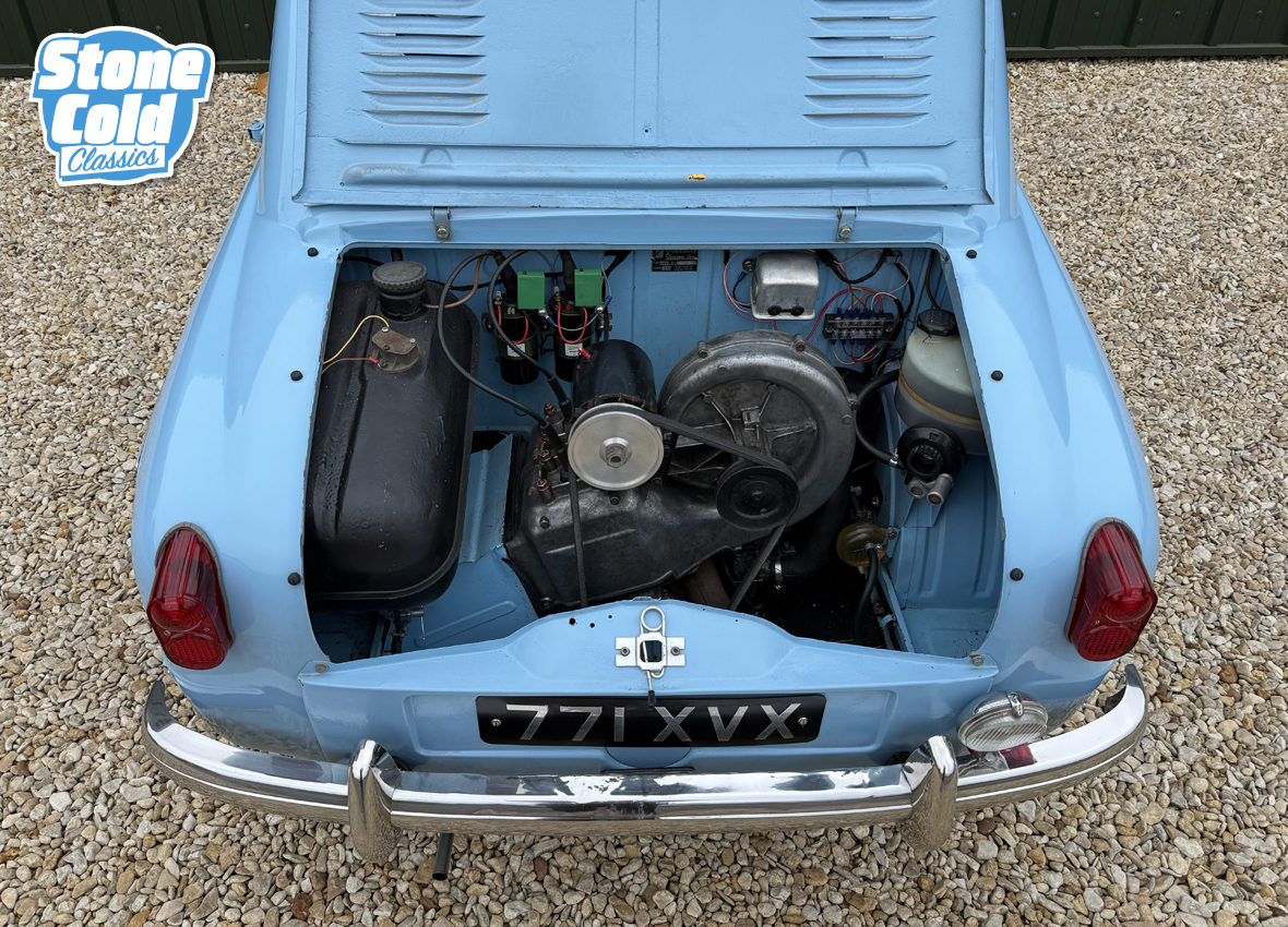 Purchased in 2020 as an unfinished project on eBay UK, an Oxfordshire based 2-stroke expert purchased the car and finished it off over a 3 year period. Upon purchase the car was already painted and the body shell made good, but the mechanics and interior needed to be finished. Completed in 2023 and UK registered at the same time. Many new parts were sourced from France (Vespa is an Italian company but these cars were made in France) and all mechanical and interior work completed. Displayed at the 2023 Goodwood GRRC Annual Open Day by the current owner where it had a wonderful reception.