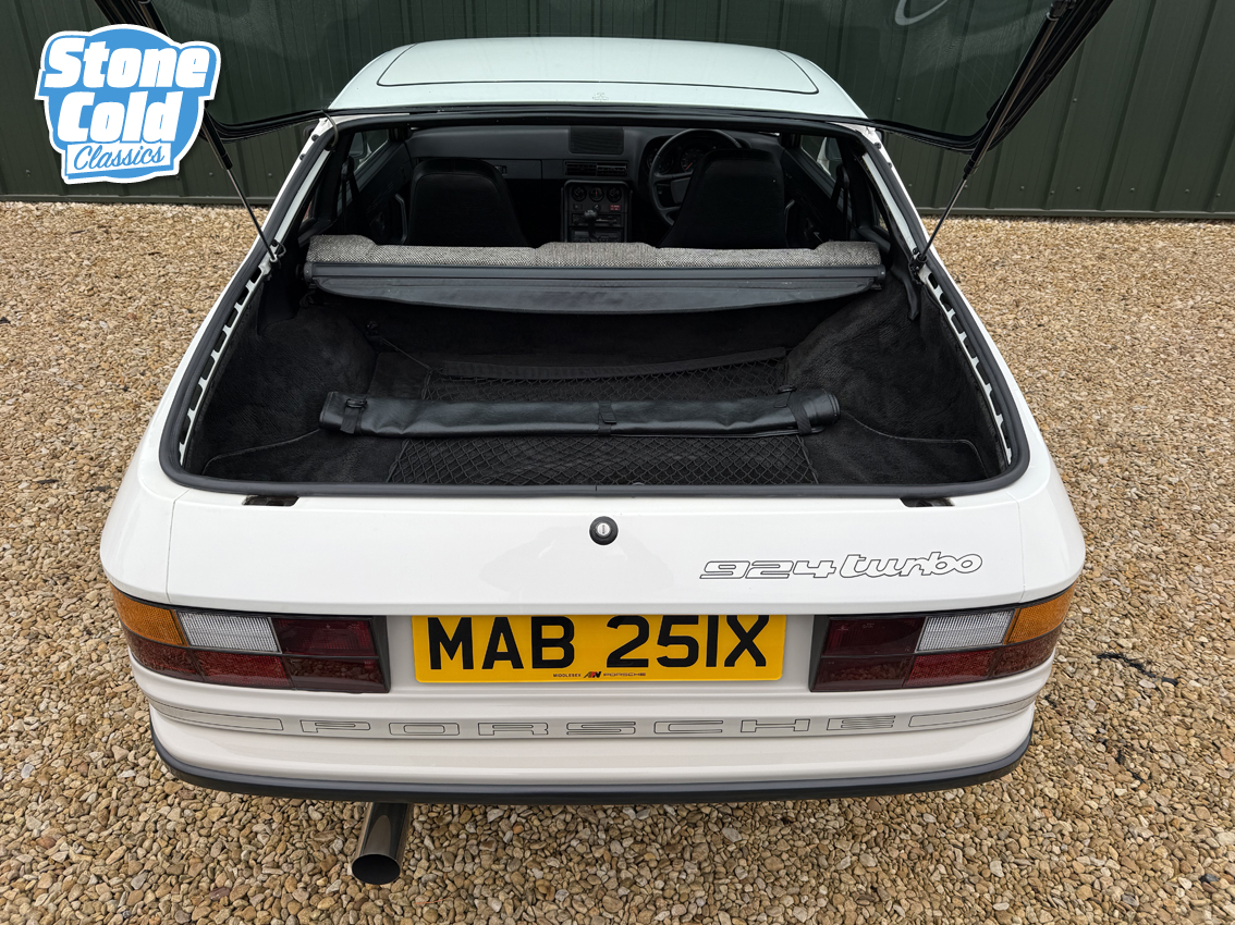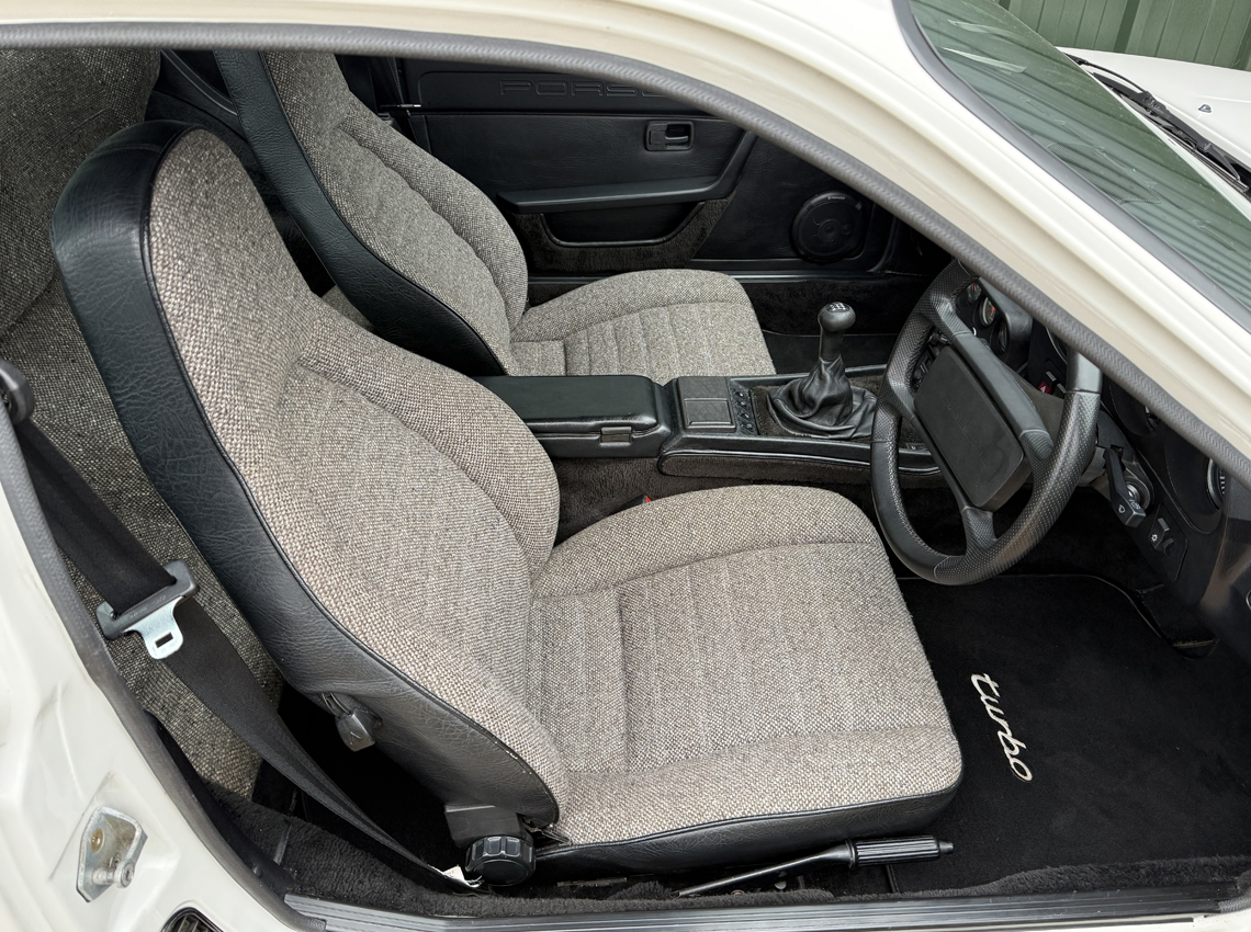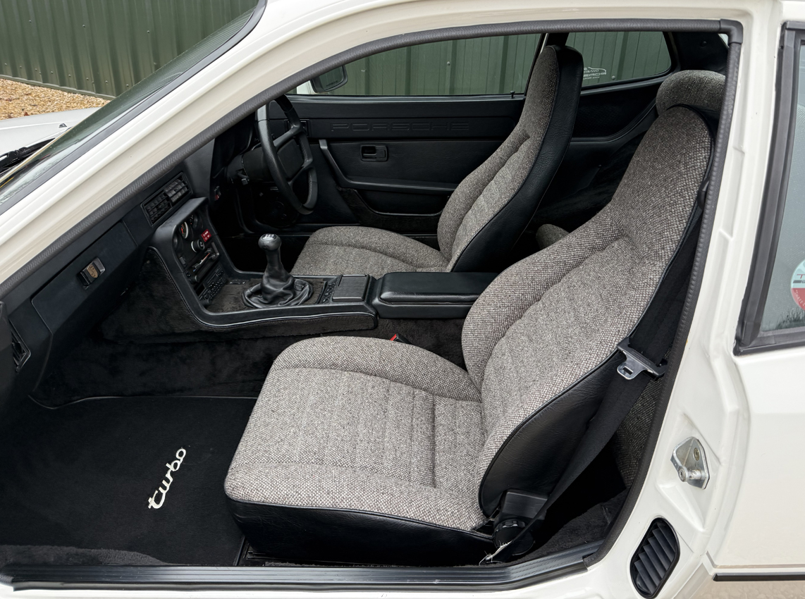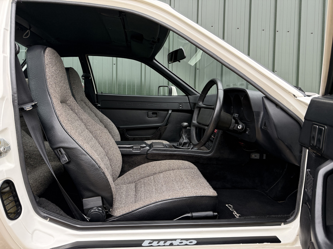 An 104,300 mile car with the present owner since 2022 with a file full of history dating back to the 1980’s. This lovely 924 Turbo is in remarkable condition both inside and out. A UK right hand drive example, originally supplied by AFN Porsche. With just 6 owners in total, one long term from 1988 to 2013 and a more recently enthusiast owned, the car has clearly been very well cared for. A full ring binder makes up the service history, with invoices dating back to the early eighties, along with many past MOTs and the original stamped service book, showing the car was almost always serviced by Porsche main dealers. Cambelt changed in 2020 (7,000 miles ago). There is an invoice on file for recommissioning work in 2013 after being in storage and seeing little use for some years. Since then the car has been very well maintained with the last service carried out in April 2024. Prior to this in 2020 the car received new oil filter, fuel filter, plugs, cambelts, leads, air filter, rear wheel bearings and an alternator belt. A full gearbox rebuild was carried out by Turbo specialist Alan Stokes in 2018. More recently the focus has been on setting the car up well, with the addition of fully adjustable GAZ gold coil over suspension on the front, with new GAZ gold telescopic dampers at the rear and full geo set up and 4 wheel alignment carried out, new OEM brake disks and Brembo pads fitted, high pressure fuel lines, new drive shafts, new alternator, track rod ends, refurbished torque tube bearings (specialist job), custom turbo back wider bore stainless steel exhaust with interchangeable tips on v-band and new brake master cylinder and brake fluid. The car starts with ease and is a huge amount of fun to drive, boosting well and with the improved handling, now feels a very capable Porsche. The current MOT is valid until August 2026 with no advisories.