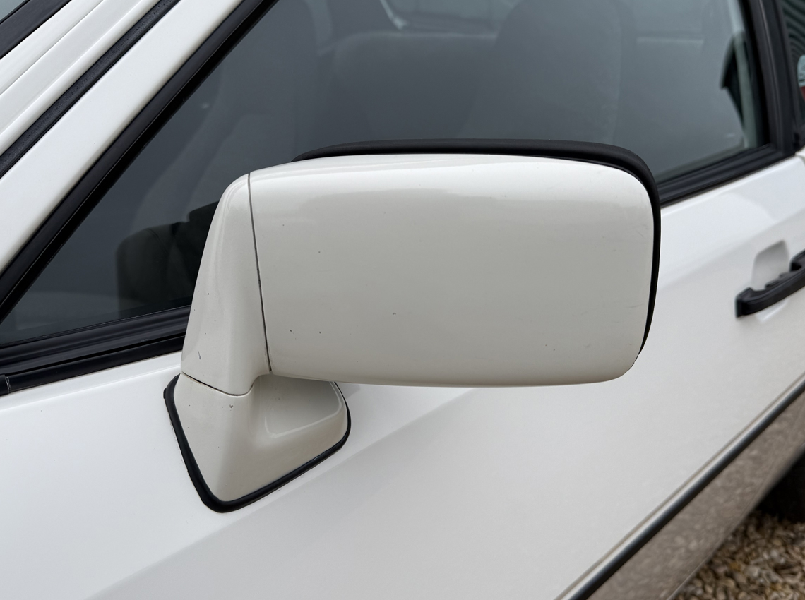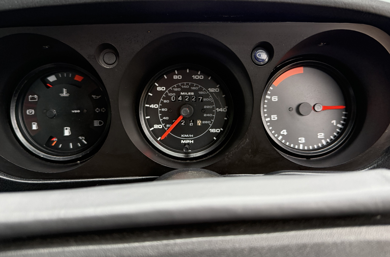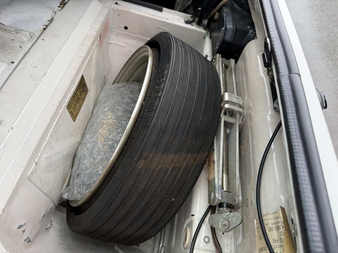 Alpine White over Gabon Grey with factory pinstripe and unmarked Grey Berber cloth interior, electric windows and mirrors, removable sunroof with sunroof bag, Blaupunkt radio, fog lights.
