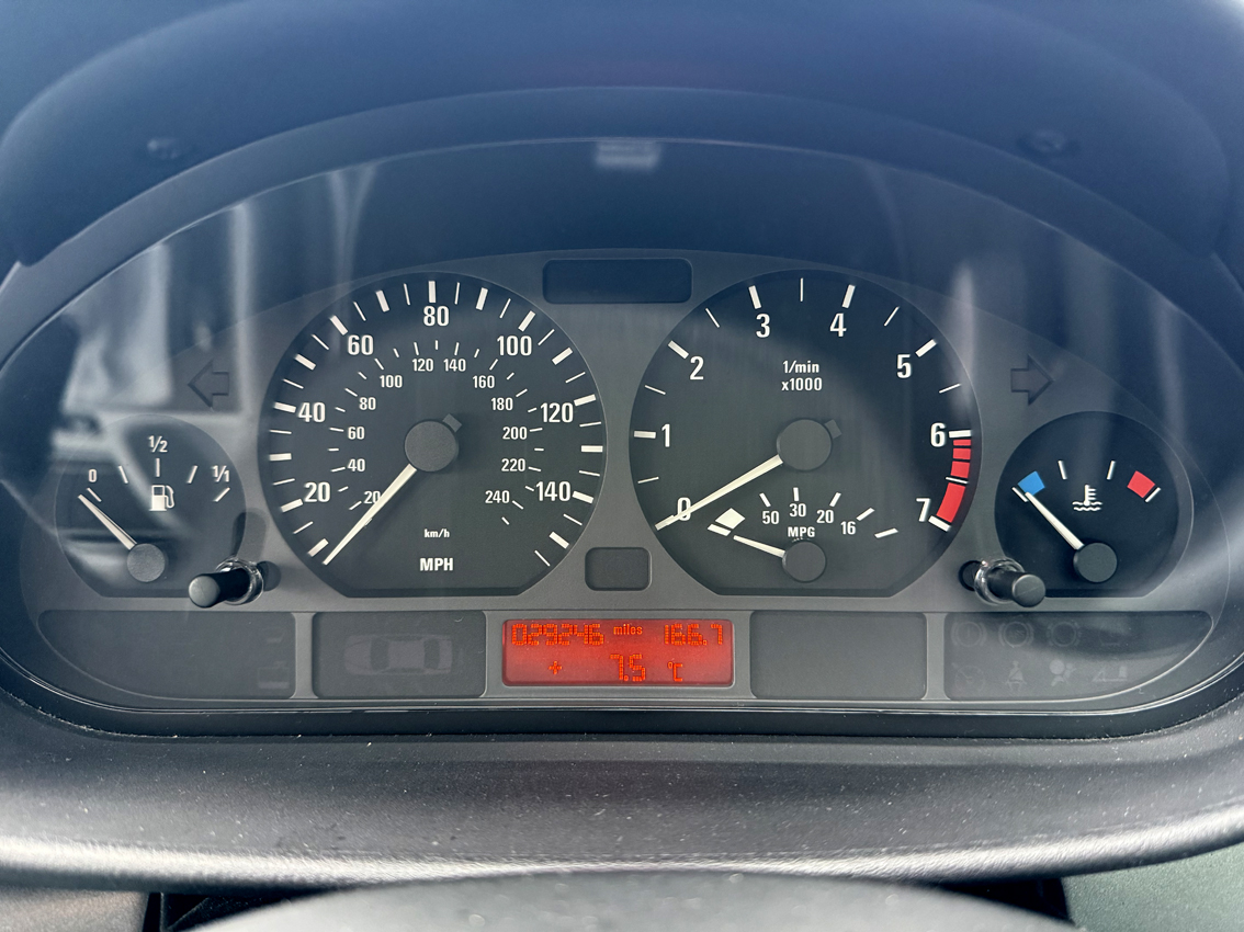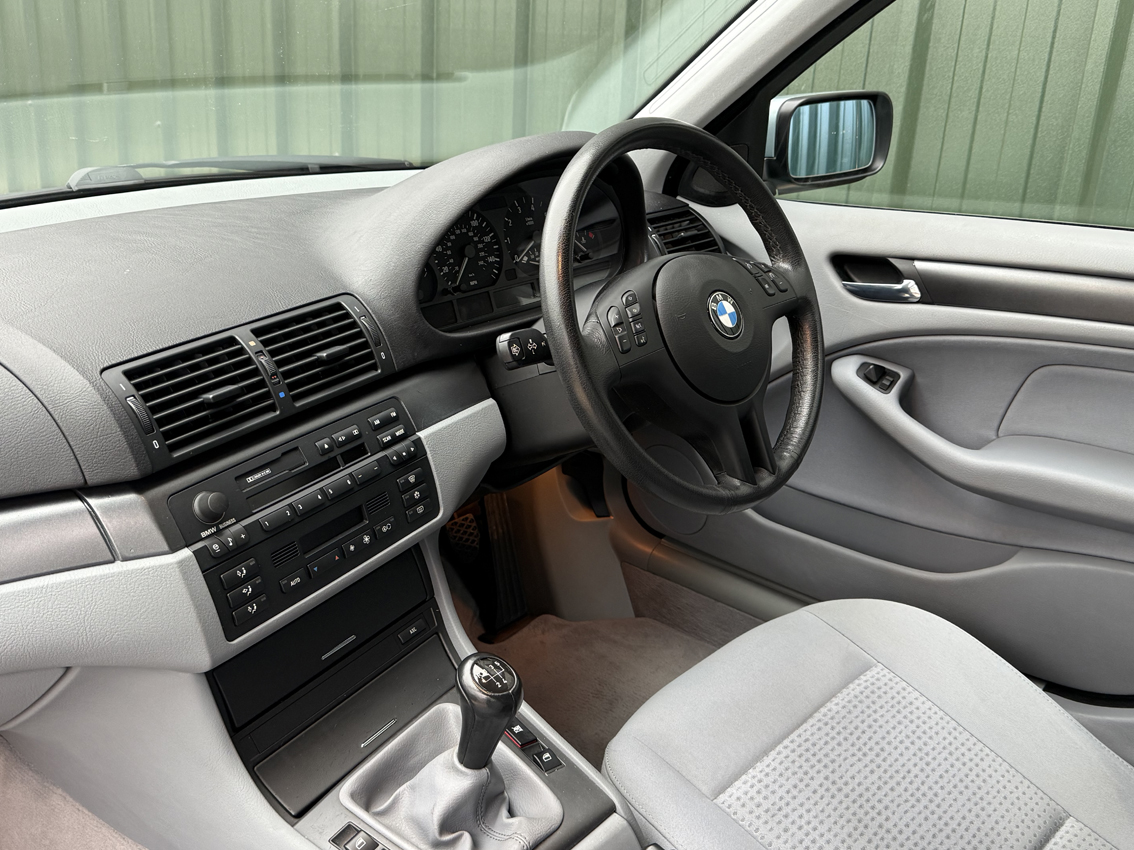 Our 318i was registered by Woods BMW of Hampshire in February 2002. The car has had 1 previous owner, both from the same family. Mileage is currently 29,300 miles. The service book shows 12 stamps the last in December 2025 at 28,700 miles including a new oil sump. The latest MOT is valid until November 2026 but a new MOT will be performed for the new owner to show all advisories have been addressed. Once the car arrived with us we replaced the wipers front and rear, rear discs and pads, a steering angle sensor, new rear bump stops, fuel cap, new front Hankook tyres, new fog light relay, new dealer branded number plates and new headlamp lenses. Owned from new by a family that spent the winter in South Africa (so no salty winter use) and MOTed and serviced every year upon their return.