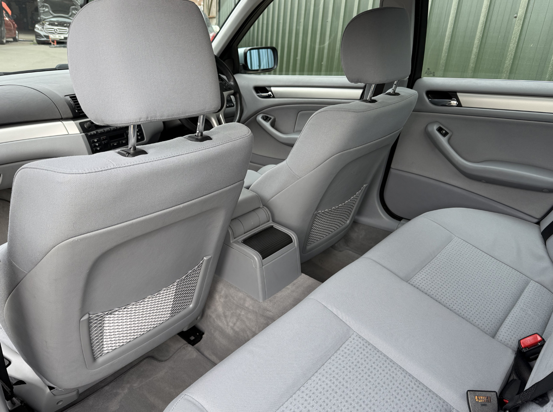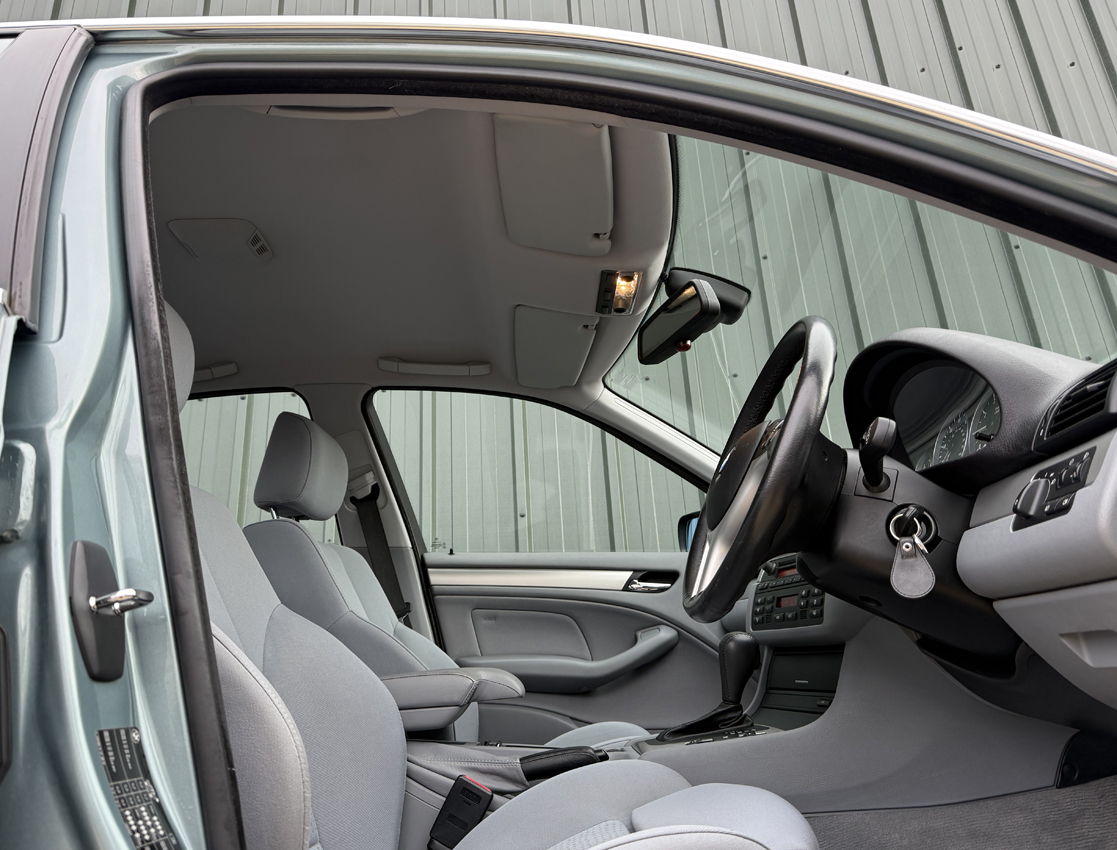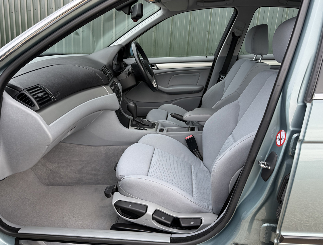 Grey Green with H9TT grey cloth, M sports front seats, 17 inch ‘parallel’ alloy wheels, boot lip spoiler, multi-functional steering wheel, front centre arm rest, rear park distance control, automatic air conditioning, front fog lights, rear head rests, cruise control, electric windows and mirrors, original radio cassette player.