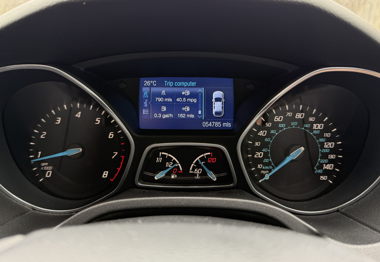 Supplied by Thomas Bee Ford Ltd of Lydney in June 2013, our Focus has had 2 owners – the first purchased the car new with a Kuga as retirement presents. The car now sits at 54,800 miles. The service book shows twelve service stamps up to 54,800 miles complete with invoices. Since we have owned the car we have performed an oil service and fitted new front discs and pads. A new timing belt was fitted in September 2024 at 47,500 miles by Cuff Miller Ford of Littlehampton, the a/c was re-gassed in April 2022 and still blows cold. The car has an excellent MOT history and the current test is valid until February 2026 with no advisories.